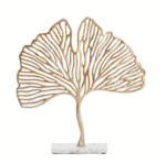 Loyara Large Gold Leaf Ornament on White Marble Base