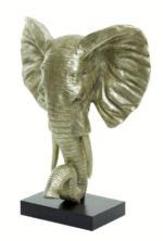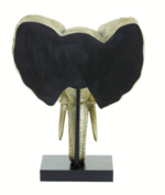 Make a bold statement in your living room with the captivating Elephant ornament. This beautiful piece features a majestic gold elephant, crafted and standing proud on a sleek black frame.